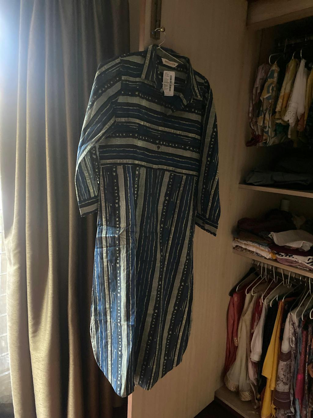 Lovely blue indigo dress. First purchase. Loved the fabric!!