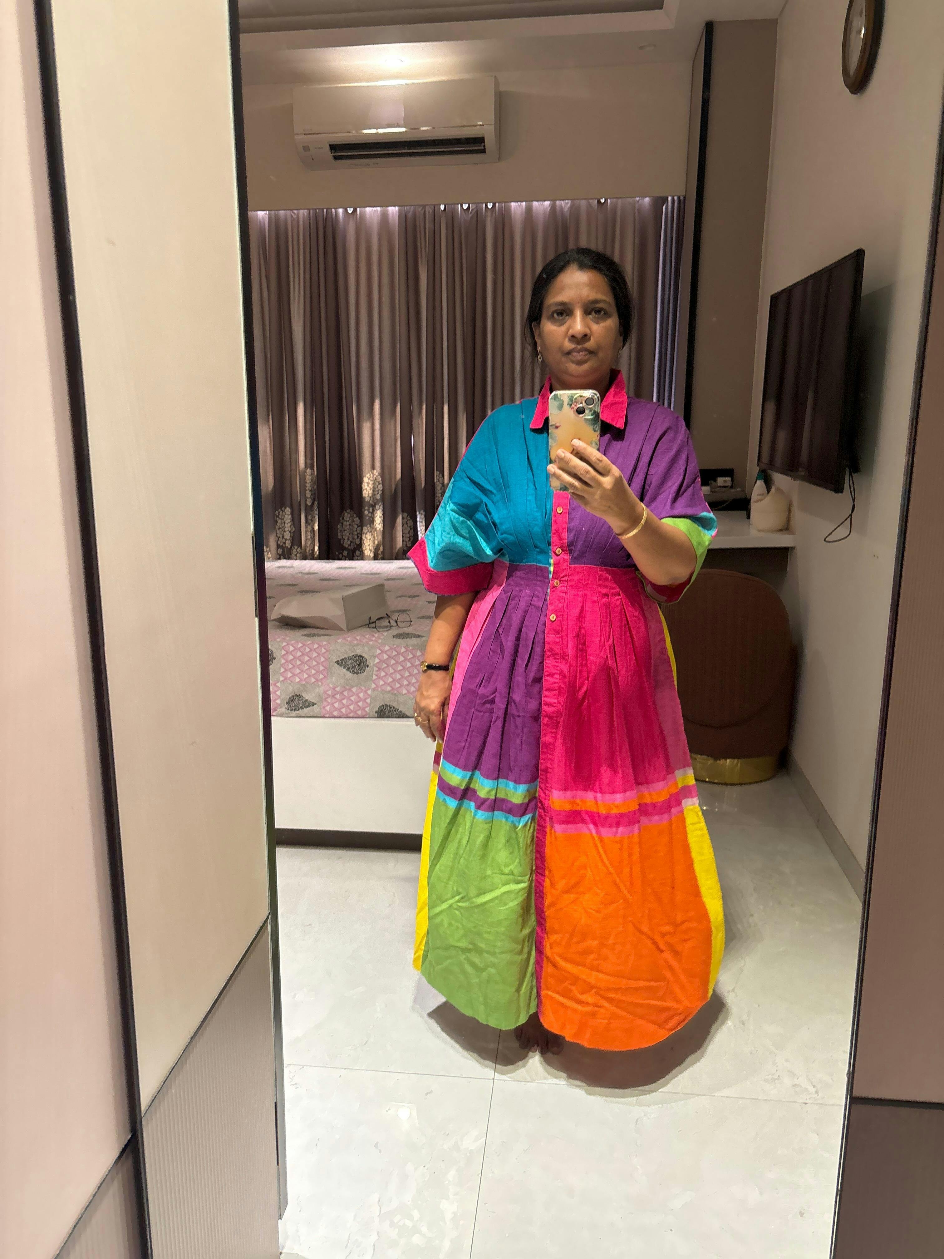 Pop Checks Pure Slub Cotton Dress - Multicolour