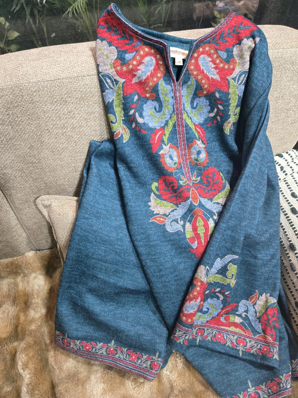 A very warm, festive and brightly coloured comfortable coord set... loved the feel of it on my skin.. totally recommend it.