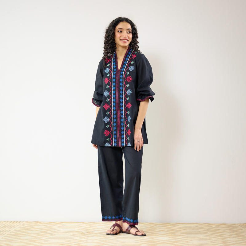 Elevate your wardrobe with the Flounce Sleeved Embroidered Slub Cotton Co-ord Set, a perfect blend of elegance and comfort. Crafted from breathable slub cotton, this set features delicate embroidery that adds a touch of sophistication. The flounce sleeves bring a playful yet graceful charm, making it ideal for casual outings, brunches, or festive gatherings. Designed for a relaxed yet flattering fit, it offers effortless style with all-day comfort. Pair it with statement accessories for a bold look or keep it minimal for understated elegance. A must-have ensemble for those who love timeless fashion with a modern twist! comfort.