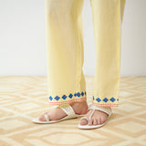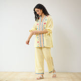 Flounce Sleeved Embroidered Slub Cotton Co-ord Set - Mango Yellow
