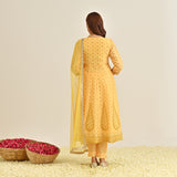 Mango Yellow Traditional Anarkali Set with Yoke Embroidery & Dupatta