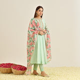 Mint Blue Anarkali Set with Floral Printed Dupatta & Yoke Embroidery