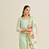 Mint Festive Embroidered Kurta Set with Printed Dupatta & Round Yoke Detail