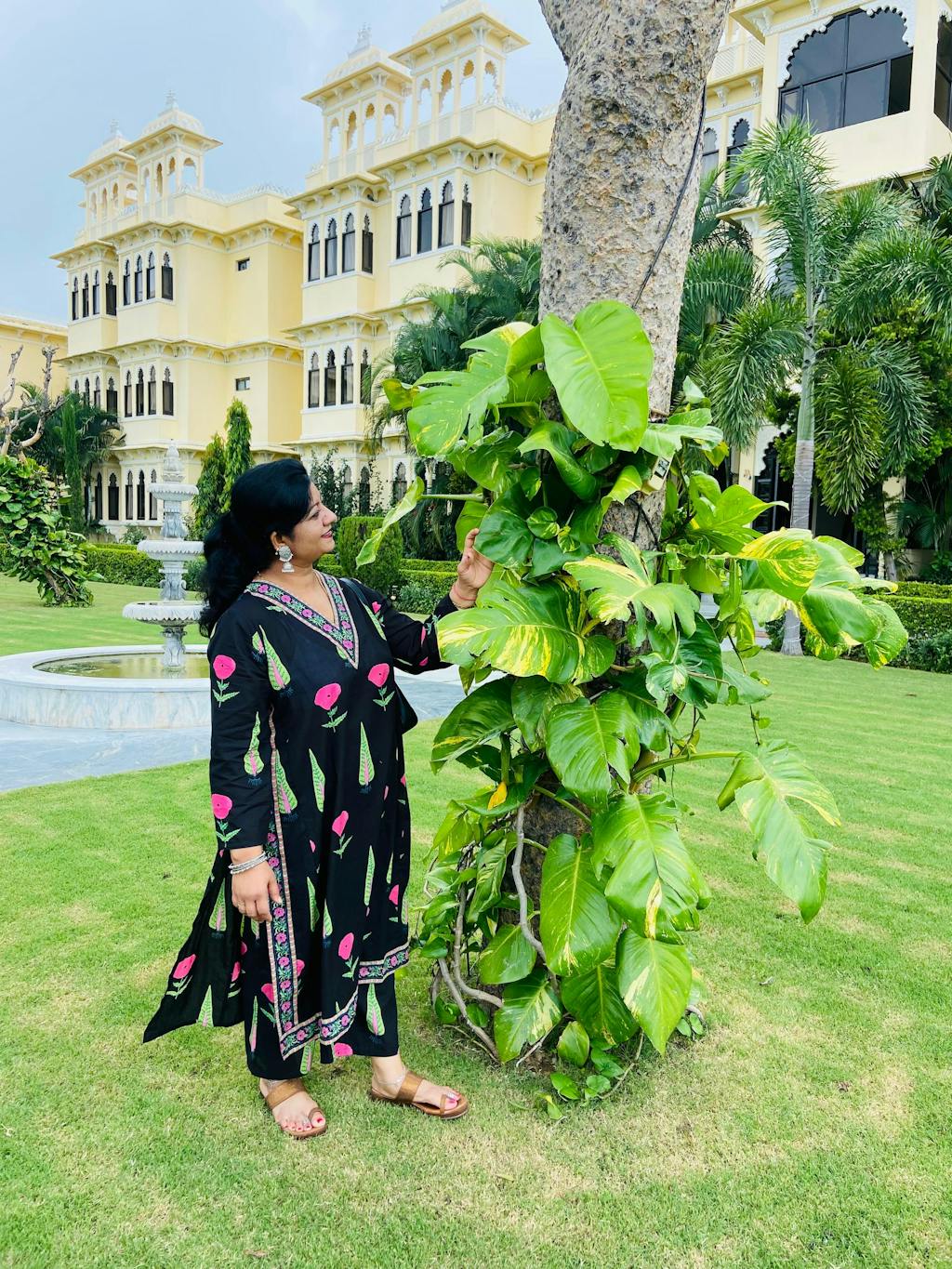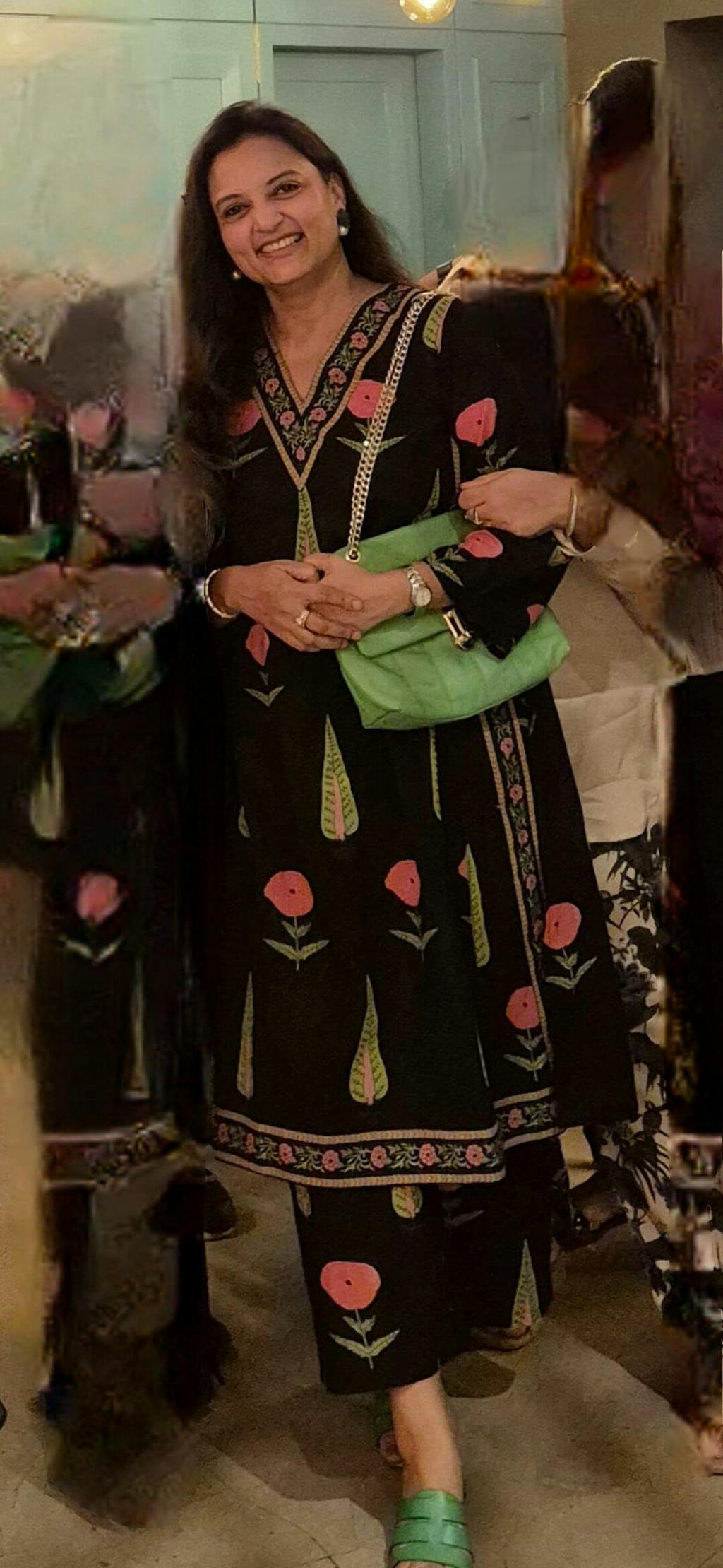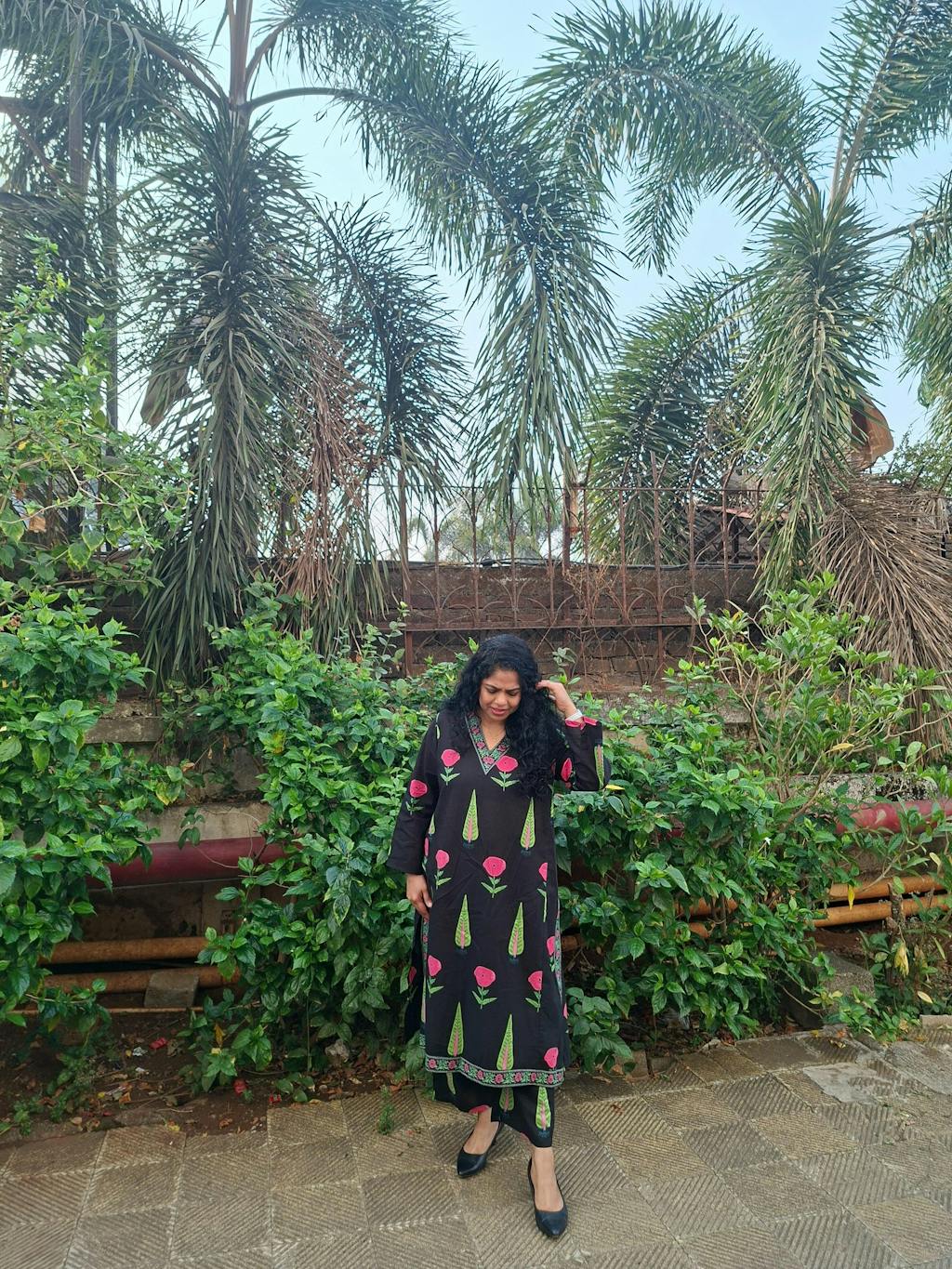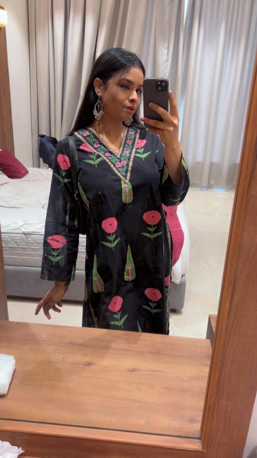 Hibiscus Slub Cotton Kurta Set - Black