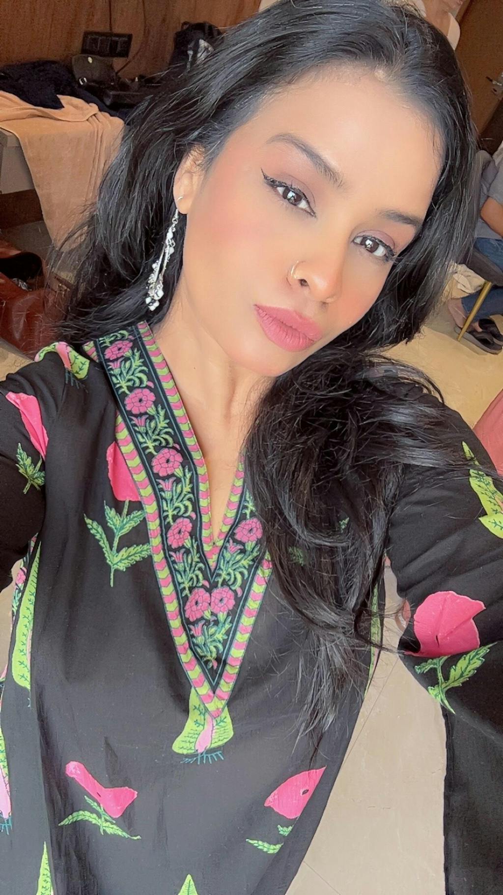 Chitra Modal Satin Kurta - Black