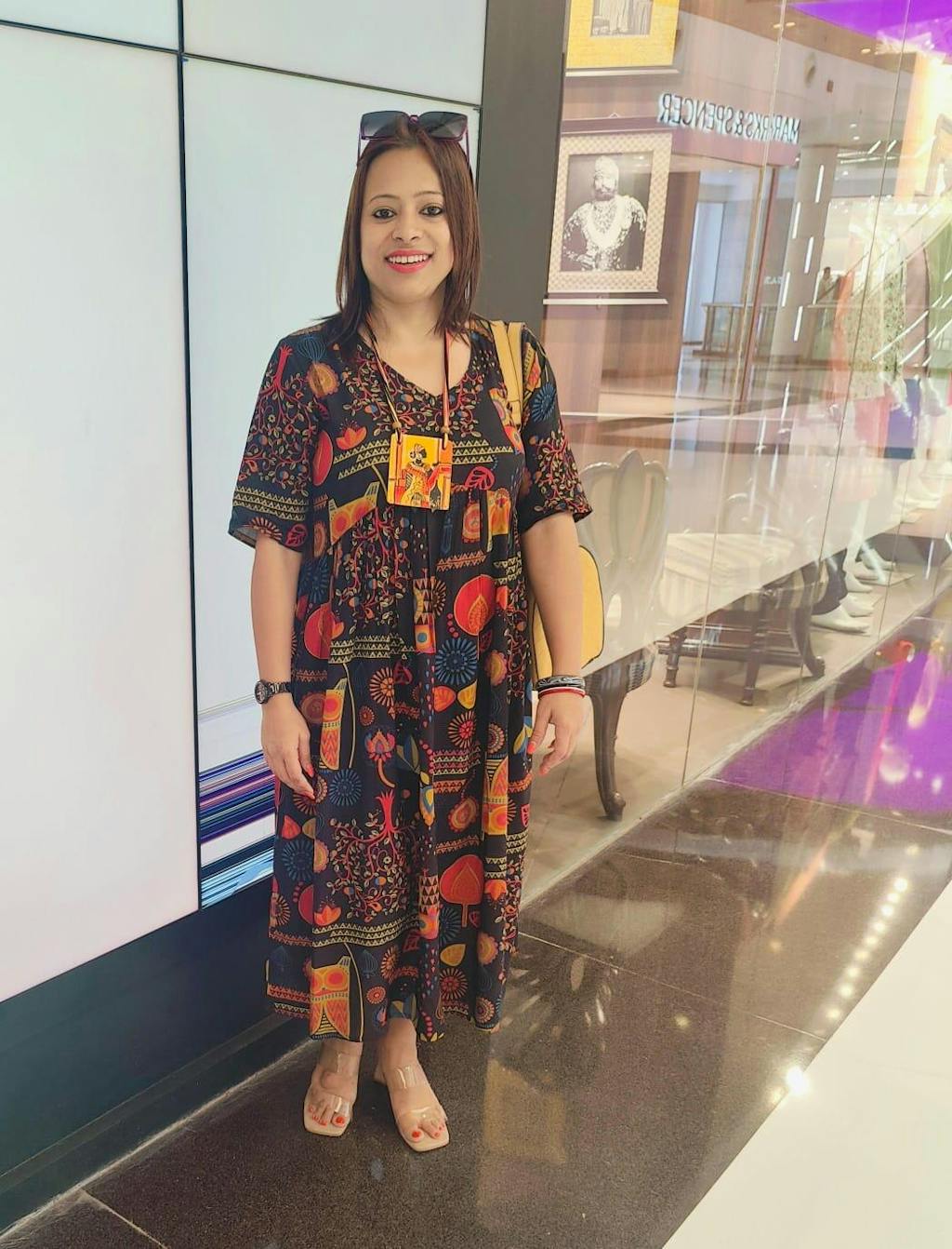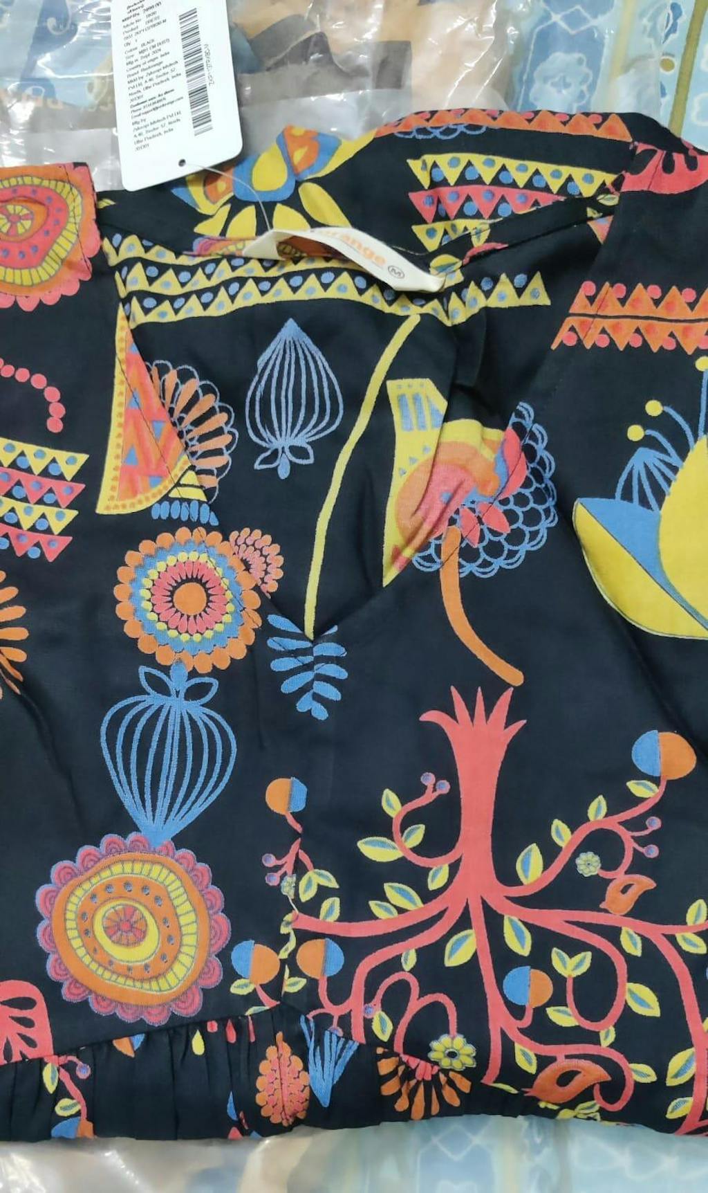 Coincide your ethnic style with contemporary silhouette with this adorable dress. Looks great for work wear as well as for casual lunch parties. The silhouette flaunts v neckline with gathers at the yoke. Team up this dress with earrings and heels.