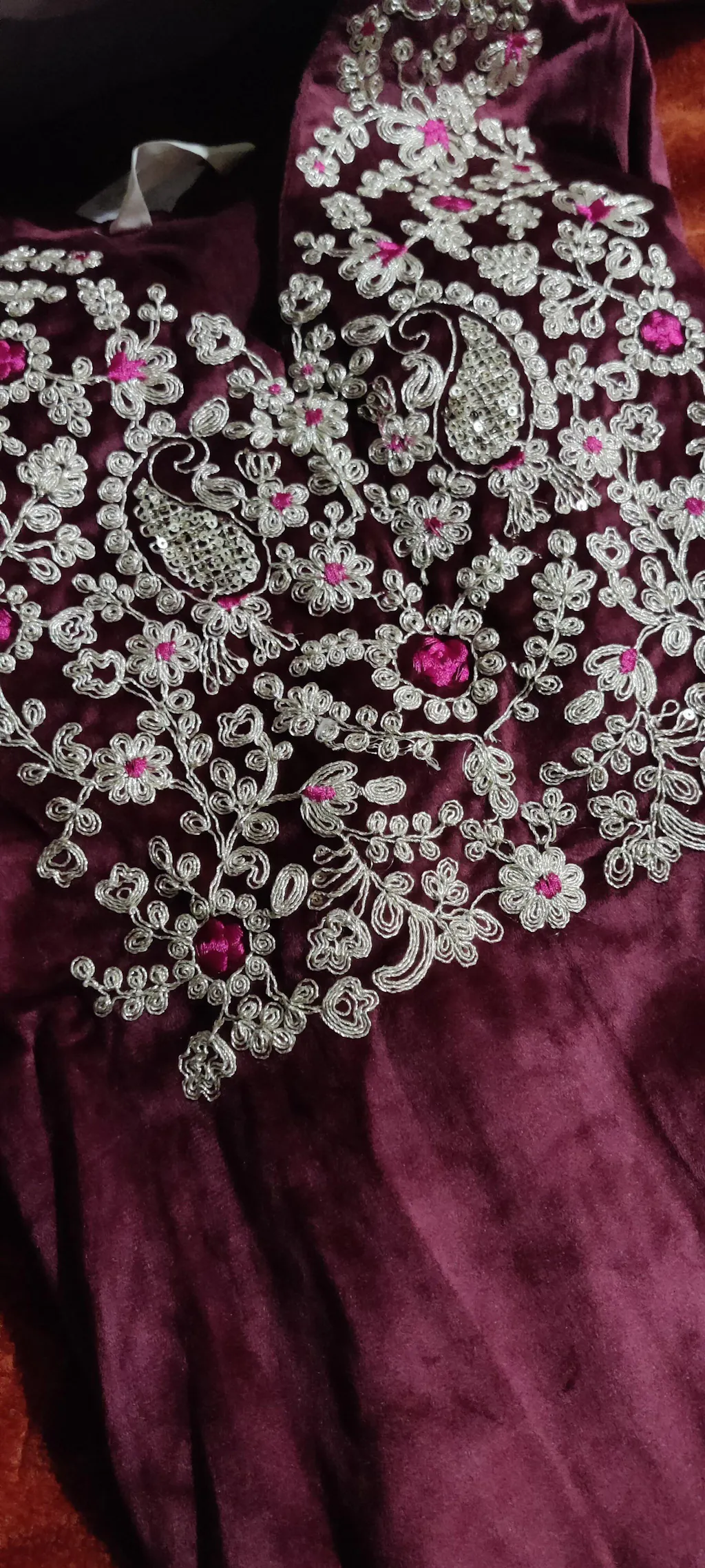 Maroon Embroidered Gulzaar Velvet Set with Dupatta