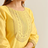 Yellow Festive Embroidered Kurta Set with Embroidered Dupatta & Yoke Detail